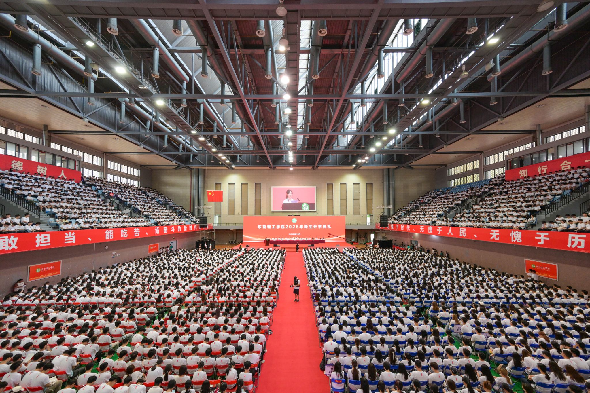“征程万里风正劲,使命千钧再奋蹄!”伴随着语气昂扬的解说,由优秀青马学员护卫的校旗方阵“跨越”整个体育馆来到主席台前。护旗学子意气风发,白色校旗亮眼飘扬,引发全场瞩目与喝彩。在热烈的氛围中,莞工2...