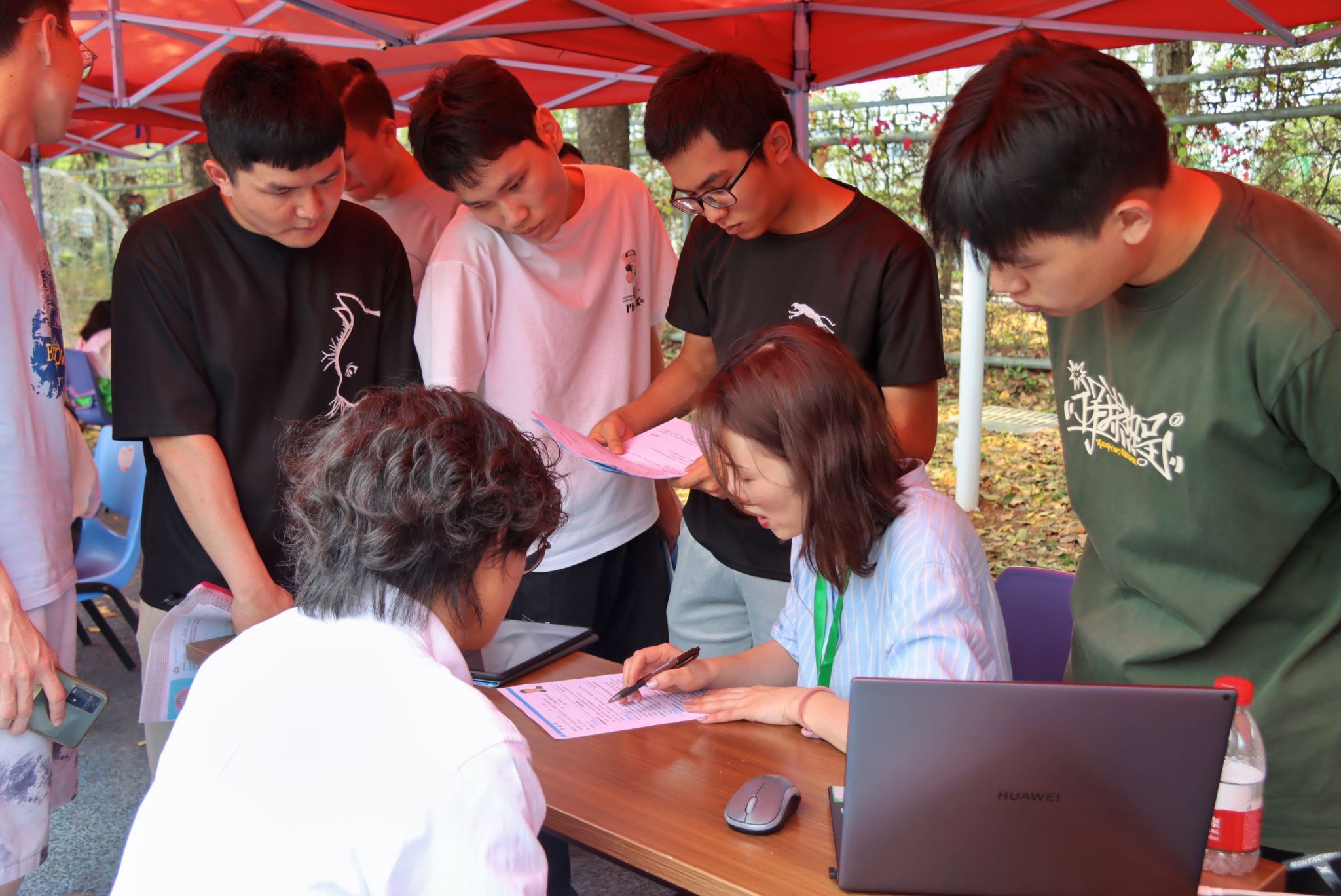 上午9:30,松山湖校区假草田径场热闹非凡。各招聘单位准备就绪,求职者们满怀期待、信心满满,手持简历,寻找心仪的岗位。