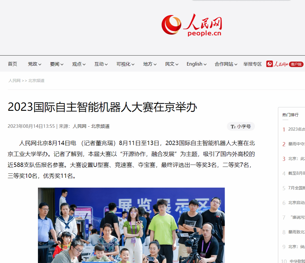 8月11日至13日,2023国际自主智能机器人大赛在北京工业大学举办。记者了解到,本届大赛以“开源协作,融合发展”为主题,吸引了国内外高校的近588支队伍报名参赛。大赛设置U型赛、竞速赛、夺宝赛,最终评选出一等奖3名,二等奖7名,三等奖10名,优秀奖11名。