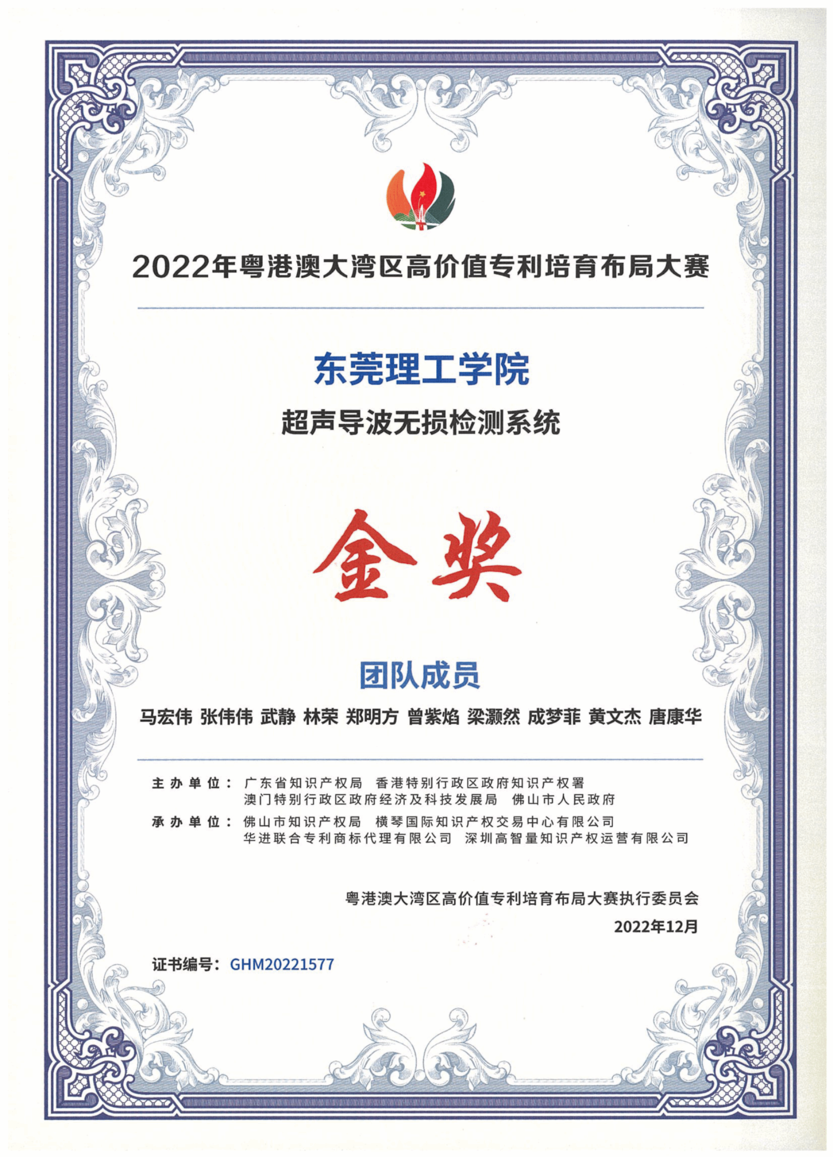 近日,2022年粤港澳大湾区高价值专利培育布局大赛(以下简称“湾高赛”)公布决赛评审结果。我校校长马宏伟教授主持的项目“超声导波无损检测系统”荣获金奖,是金奖获得者中唯一来自高校单位的项目,也是我校参加湾高赛以来首次获得金奖。