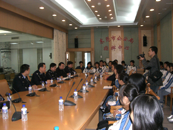 2007年1月10日,既是全国第21个“110”宣传日,也是我市开通110报警服务工作10周年纪念日。1月6日,我院保卫处应邀组织各系学生代表共40人参加了东莞市公安局开展的“110”主题宣传日系列活动。活动期间,我院师生首先参观莞城公安分局治安视频监控系统和110报警服务台,并乘坐开放式警车体验路面巡逻,然后前往市公安局指挥中心110报警服务台参观,听取关于我市110报警工作的介绍,与110接处警民警交流互动,零距离体验110接处警方式、流程,并受到市公安局李泽林副局长等领导的亲切接见及座谈。通过这次活动,他们更深入了解了110,对东莞市社会治安管理充满信心。