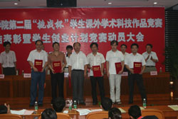 6月28日下午,学院第二届“挑战杯”学生课外学术作品竞赛总结表彰暨学生创业计划竞赛动员大会在学术交流中心举行。党委副书记王江水、副院长邹晓平,教务长林养素及有关部门负责人,学生会干部、各班级学习委员参加了会议。