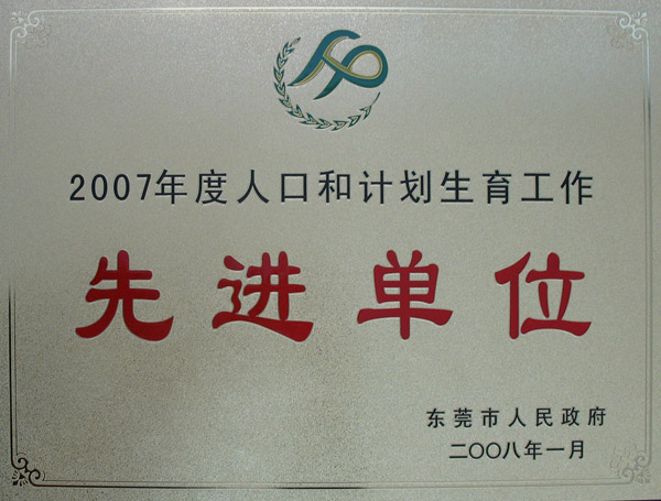 2008年1月8日,全市人口和计划生育工作总结表彰大会在市行政办事中心会议室举行,会议总结了我市2007年度人口和计划生育工作情况,布置了2008年的工作任务并表彰了东莞市2007年度人口和计划生育工作先进单位和个人。我院被东莞市政府评为“2007年度人口和计划生育工作先进单位”。