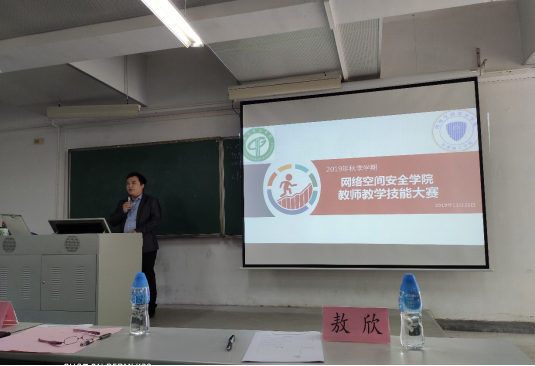 2019年11月21日下午14:30,网络空间安全学院首届(2019-2020学年)教师教学技能大赛在6E205课室如期开展。学院执行院长殷建平、教学副院长敖欣携全院专任教师、教务处督导、以及2017、2018、2019级学生代表出席会议。按照学校教务处统一标准,网络空间安全学院共选拔出11名青年教师参加本次大赛。为实现以赛督教的目标,学院邀请电子与智能化学院宋跃教授、马克思主义学院谢敏副教授与学院执行院长殷建平教授、教学督导组长徐钦桂教授、副院长敖欣副教授组成5人的评委小组。大赛由敖欣副院长主持。