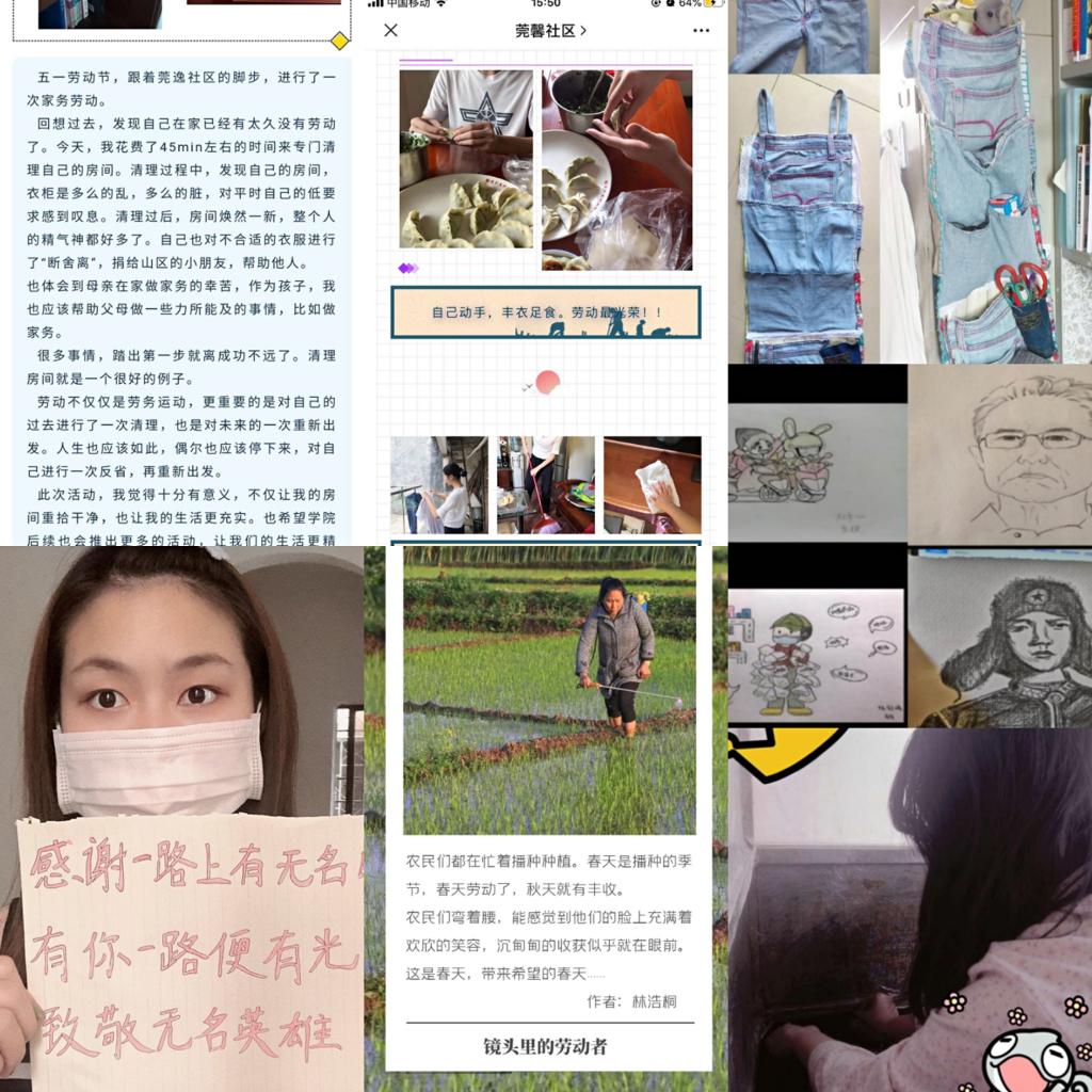 五一期间,通过开展系列线上活动,对劳动人民的辛勤付出表达感谢和敬意,增强了对劳动意义的认识。其中,莞华分院参加活动的同学表示:“自己动手去利用旧物,不会浪费掉,循环使用,不会污染环境,DIY中不仅可以锻炼动手能力,更能培养环保意识,一举两得!”
