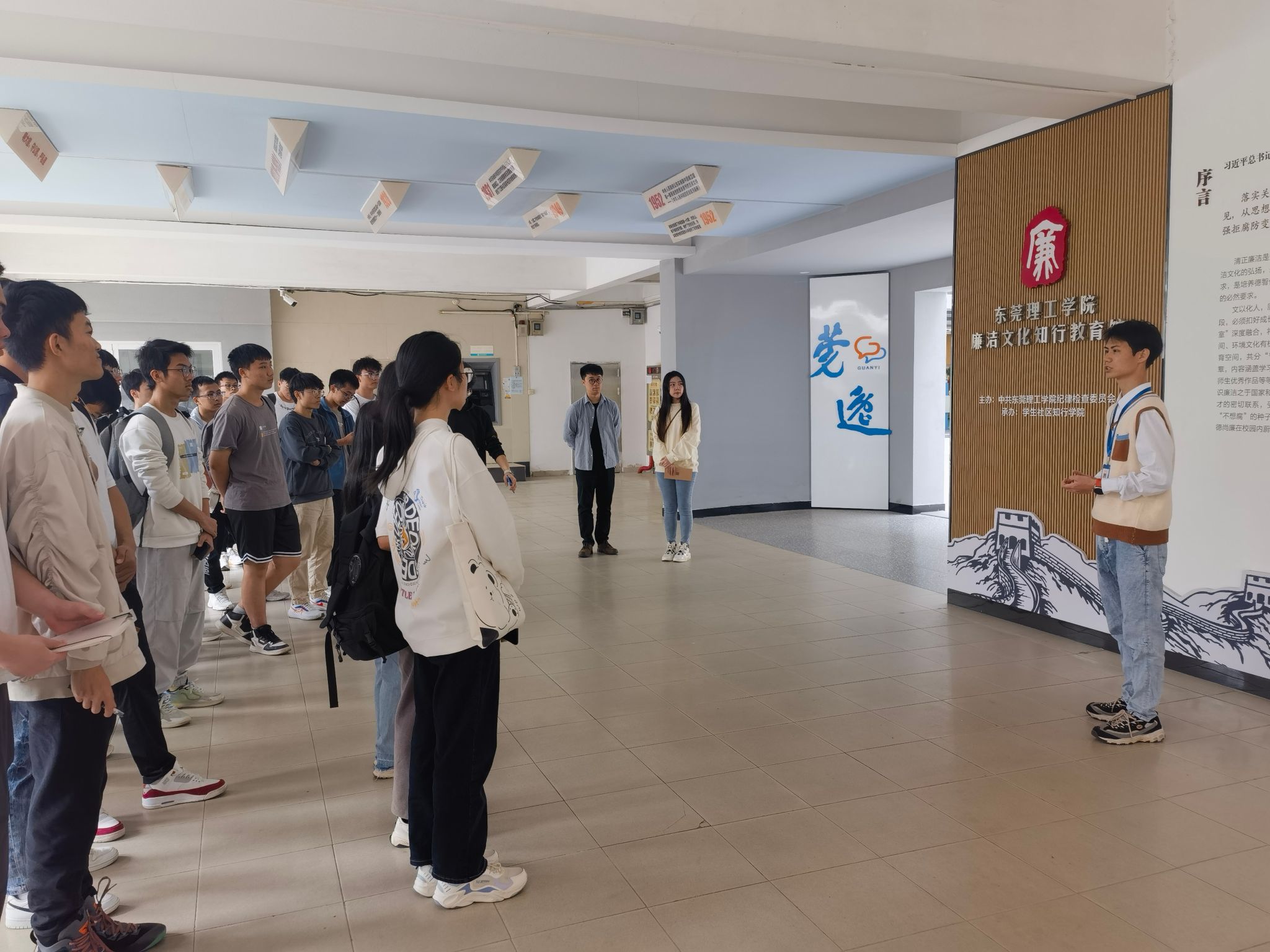 学生社区是学生学习、生活的一个重要场域。学校积极推动廉洁文化教育进社区,打造了将廉洁文化与生活空间、学习空间、网络空间、环境文化融于一体的廉洁文化知行教育馆。